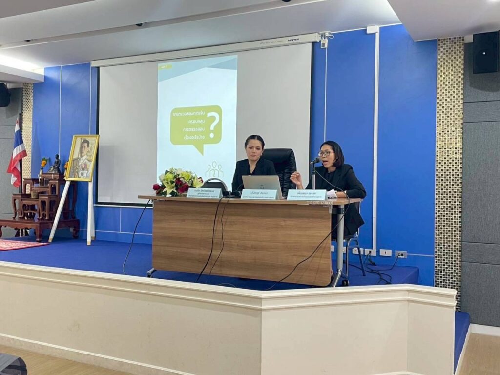 เมื่อวันจันทร์ที่ 17 พฤศจิกายน 2568 เวลา 14.30 – 16.00 น. สำนักตรวจเงินแผ่นดินจังหวัดสุราษฎร์ธานี นำโดยนายธนกิจ สิทธิพราหมณ์ ผู้อำนวยการกลุ่ม พร้อมด้วยนางปริยานุช สาสนัส นักวิชาการตรวจเงินแผ่นดินชำนาญการพิเศษ และนางสาวเพ็ญพนอ ชมเชยนักวิชาการตรวจเงินแผ่นดินชำนาญการ ได้รับเชิญเป็นวิทยากรบรรยายหัวข้อ “การตรวจสอบของสำนักงานการตรวจเงินแผ่นดิน” ให้แก่บุคลากรภาครัฐผู้รับผิดชอบการบริหารงานด้านการเงินการคลัง ณ ห้องศรีวิชัย สำนักงานคลังเขต 8 สุราษฎร์ธานี