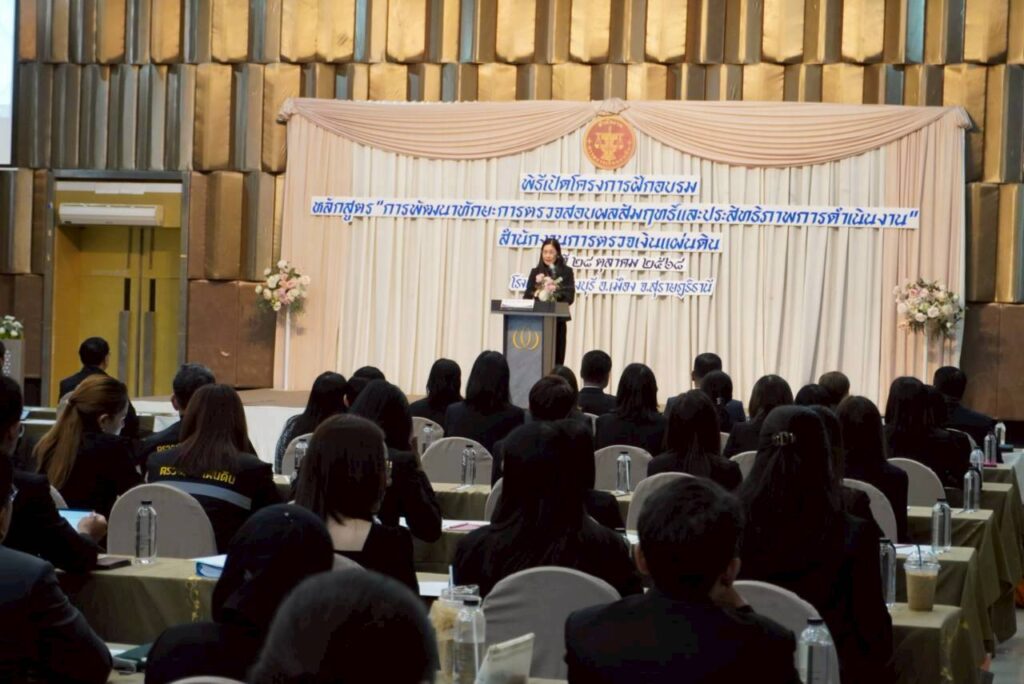 วันอังคารที่ 28 ตุลาคม 2568 นางสุไลวรรณ์ เพียรเพิ่มภัทร ผู้ตรวจเงินแผ่นดิน (สตภ.13) ให้เกียรติเป็นประธานในพิธีเปิดโครงการฝึกอบรม หลักสูตร “การพัฒนาทักษะการตรวจสอบผลสัมฤทธิ์และประสิทธิภาพการดำเนินงาน” รุ่นที่ 1 ณ โรงแรมบรรจงบุรี จังหวัดสุราษฎร์ธานี
